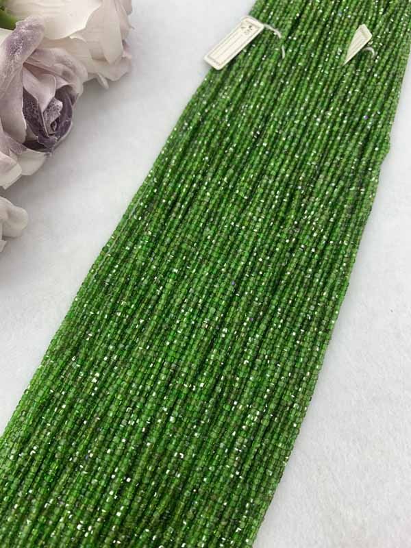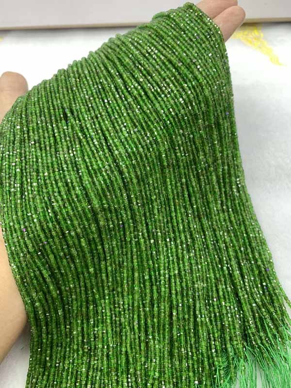 Green Diopside Cube Bead Chain Enhances Business Luck and Connections.