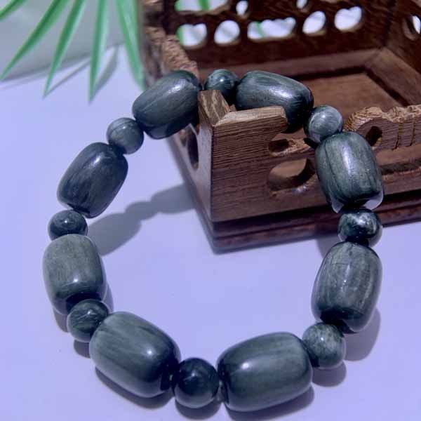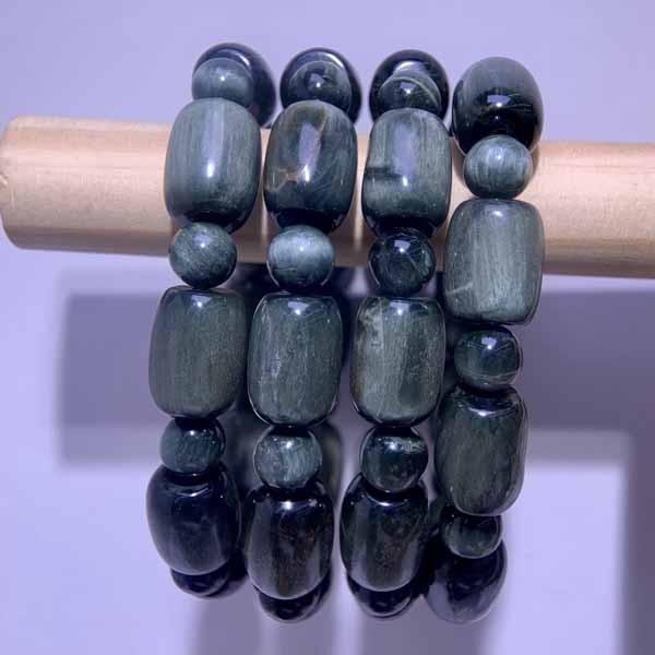 Actinolite Barrel Beads Single Loop Bracelet — Improves communication, expression and social charm.