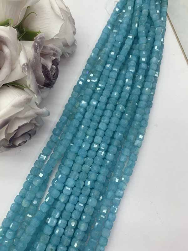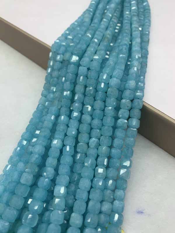Amazonite Color Square Beads Long Chain — Enhances self-worth and helps indecisive people make firm decisions.