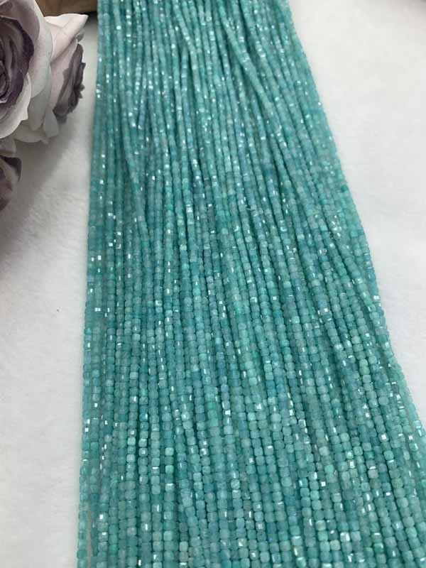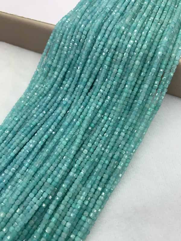 Amazonite Square Beads Long Chain — Calms irritability, tension, anxiety and insomnia.