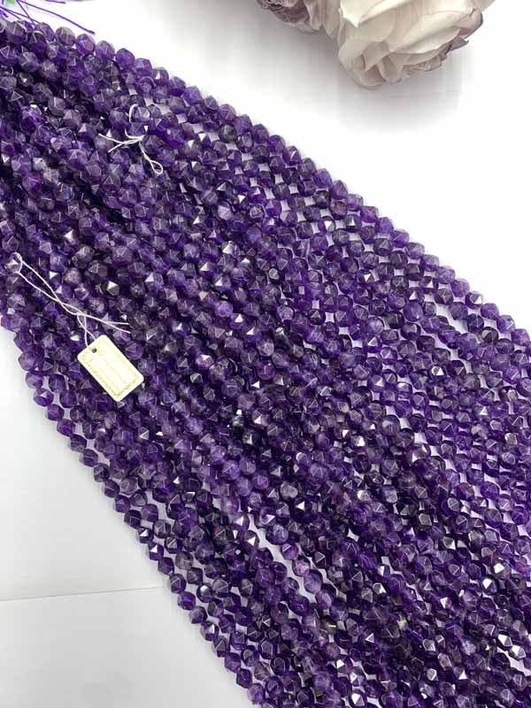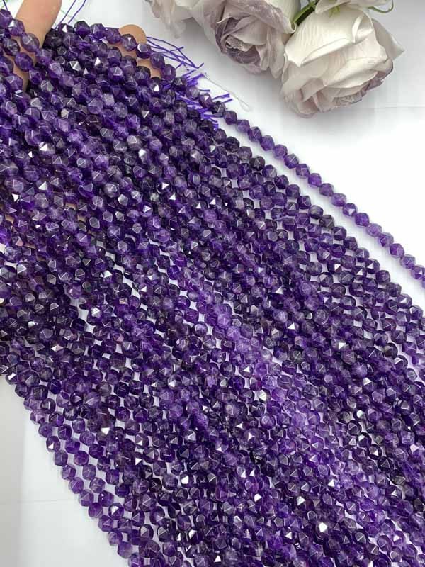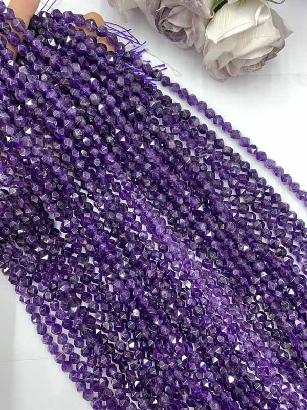Amethyst Faceted Cut Long Chain stabilizes emotional fluctuations.