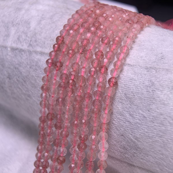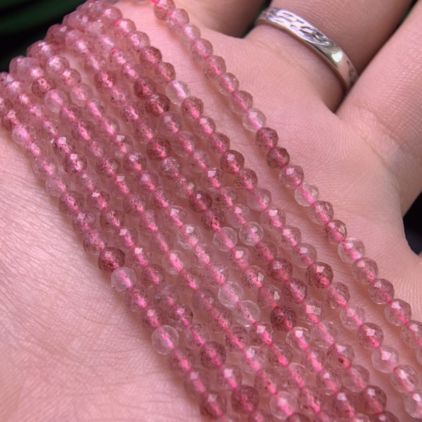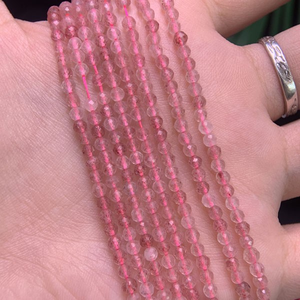 Angled Faceted Strawberry Quartz Long Chain helps unlock inner knots, soothe restless emotions, and aids in awakening wisdom and attracting true love.