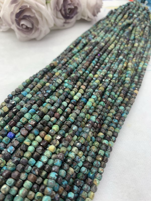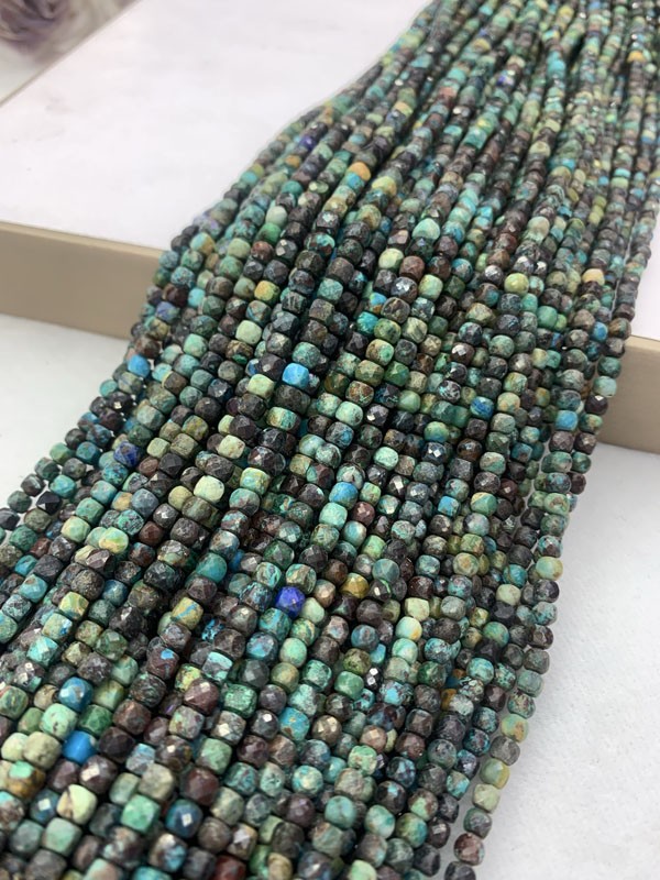 Azurite Cube Beads Long Chain can awaken the subconscious mind and inspire original creativity.