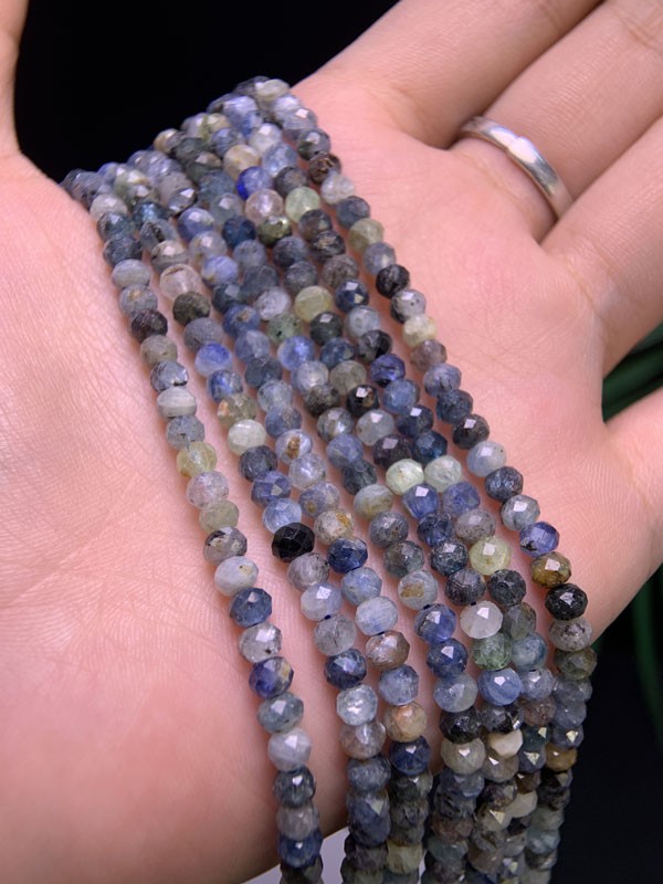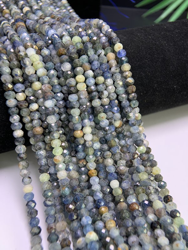 Blue Kyanite abacus beads long chain enhances decision-making, analytical skills and inspiration.