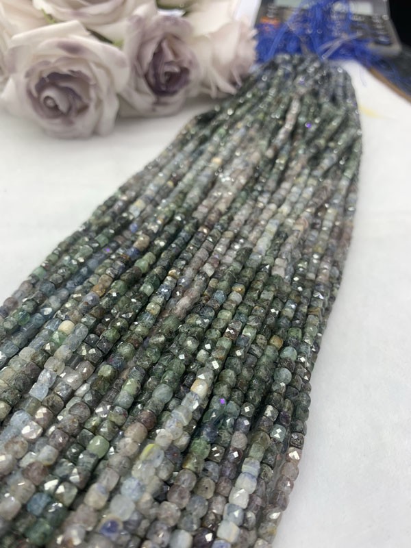Blue Kyanite gradient sugar cube long chain helps purify emotions and calm the heart.