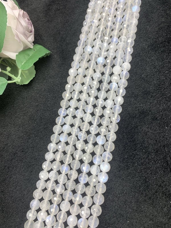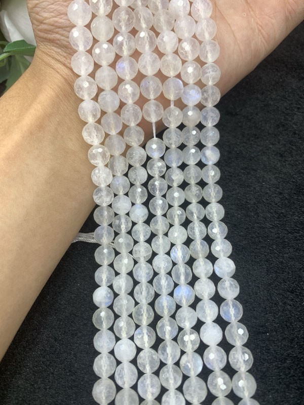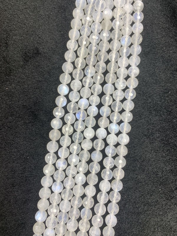 Blue Moonstone 128 Faceted Long Chain has a gentle nurturing effect on the liver, pancreas and other organs.