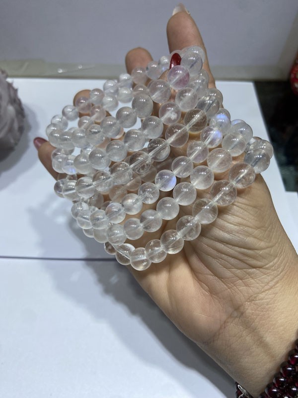 Blue Moonstone smooth bead bracelet promotes communication, repairs relationships, and makes social interactions smoother and warmer.