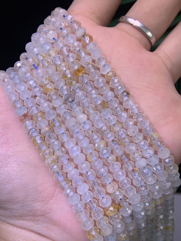 Blue & Yellow Topaz Abacus Bead Long Chain calms irritability, relieves high pressure and scattered thoughts.
