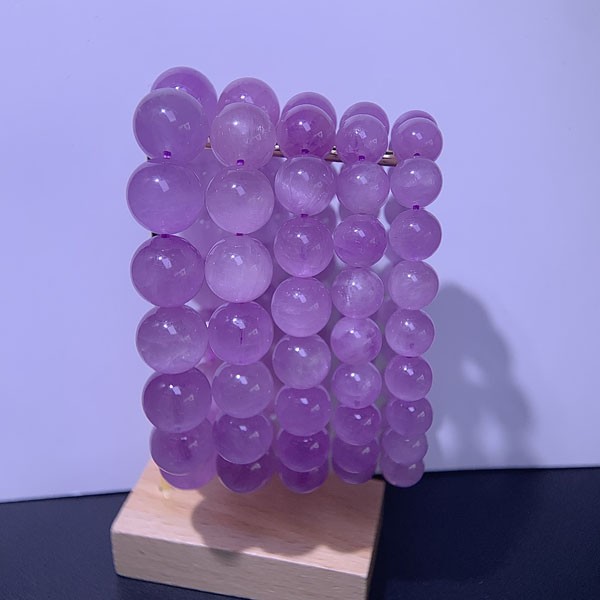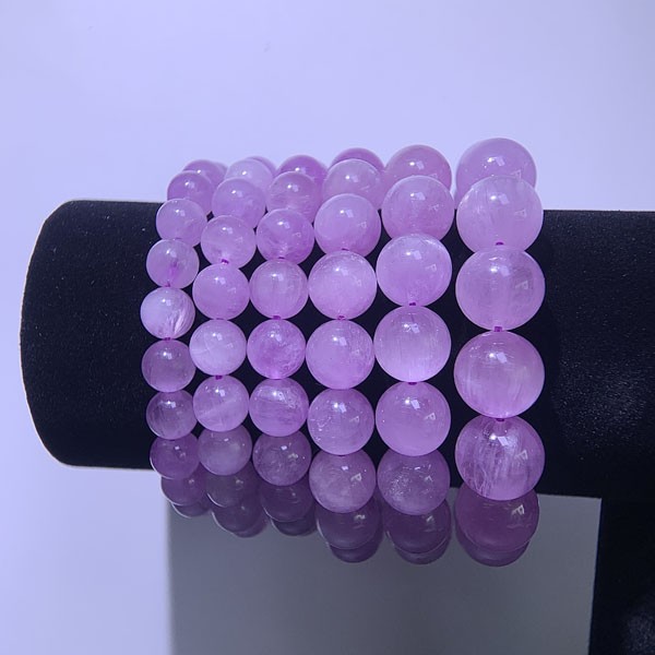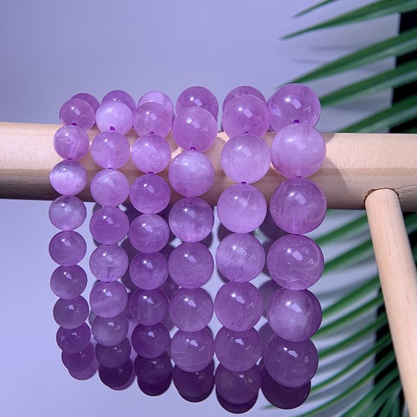 Bright purple cat's eye kunzite beaded bracelet clears and purifies negative energy from all body chakras.