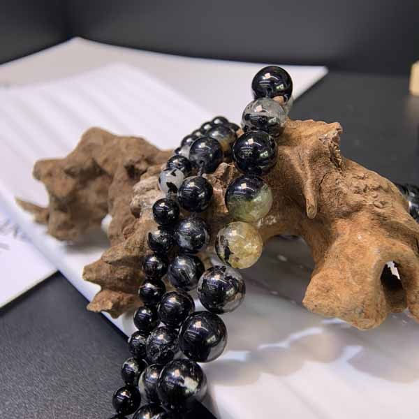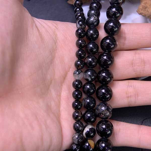 Dark shiny black tourmaline long chain helps balance the body and mind, aligns all chakras, and brings overall stability.