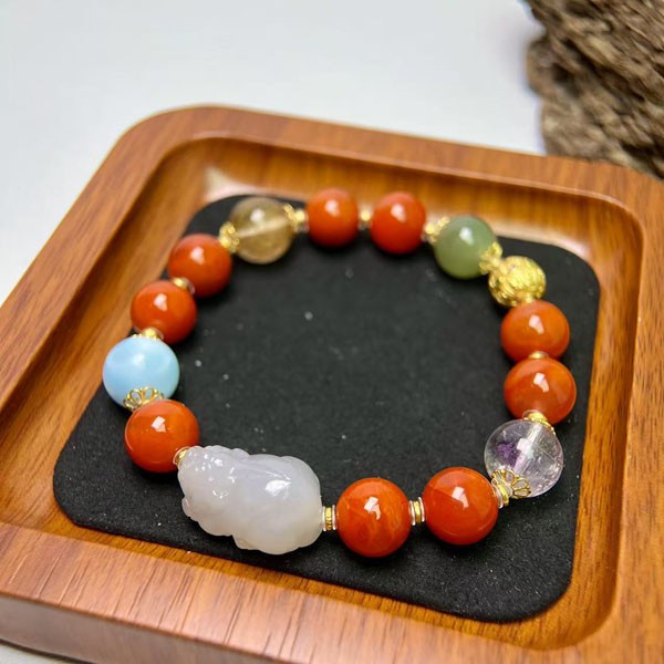 South Red Agate DIY Bracelet with Smoky Purple Pi Xiu