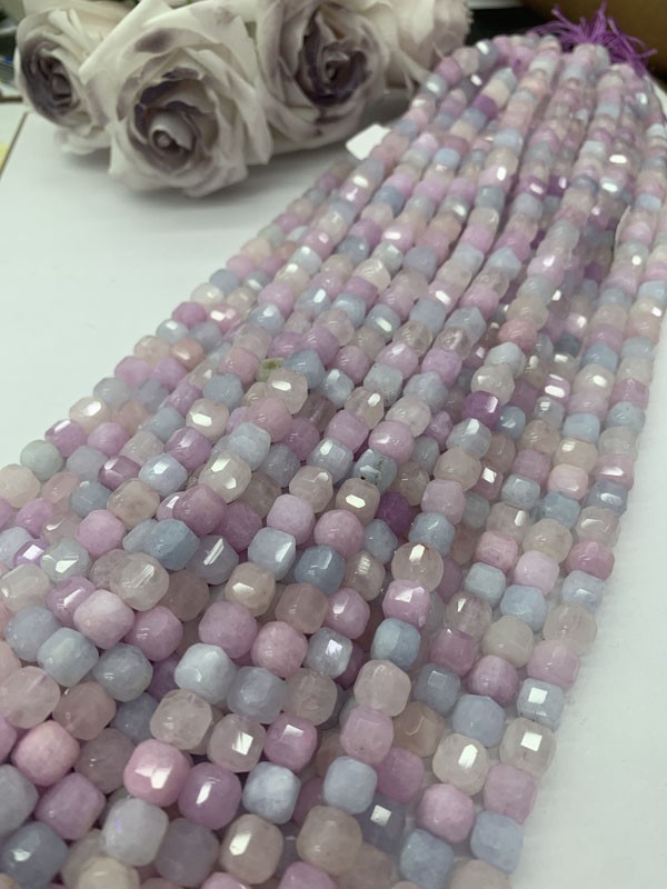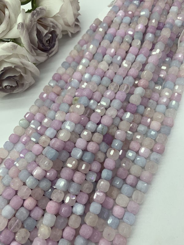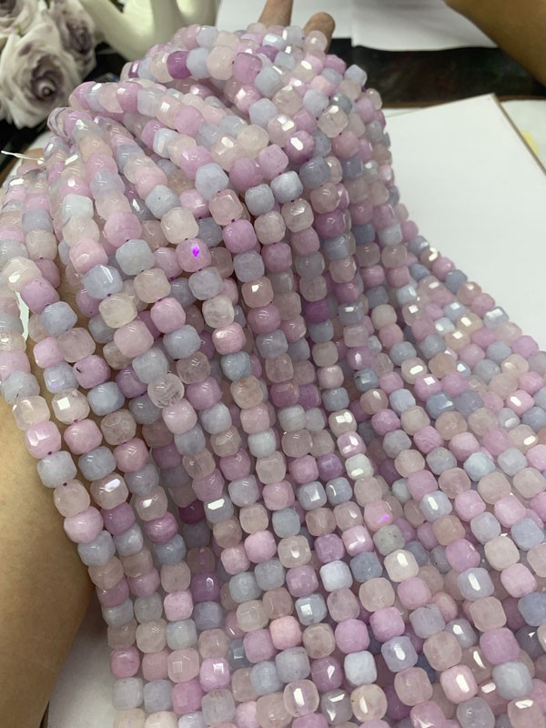 Dream Lavender Cube Beads Long Strand: Its stable energy can relieve mental tension.