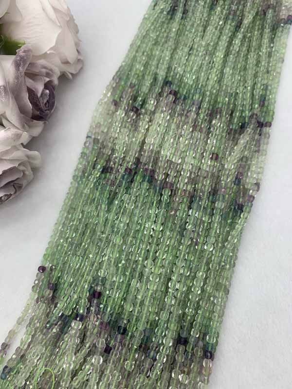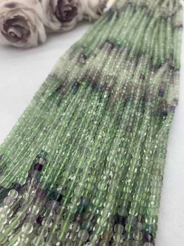 Fluorite Gradient Cube Beads Long Chain wards off negative energy, avoids petty people and dissolves evil spirits.