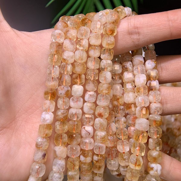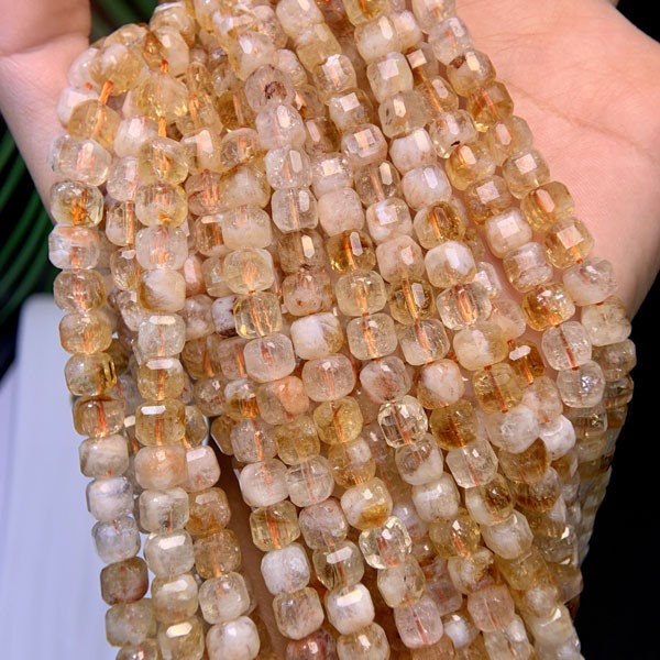 Golden Rutilated Quartz square bead semi-finished long chain boosts initiative and relieves anxiety.