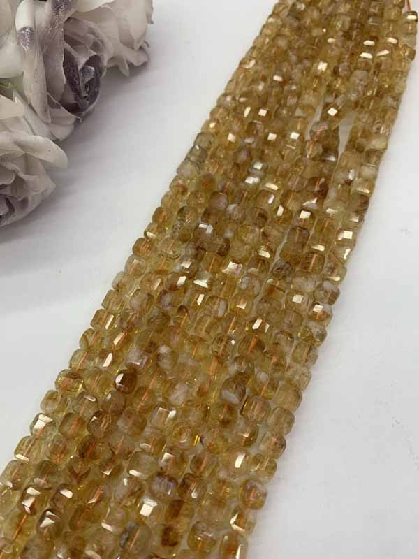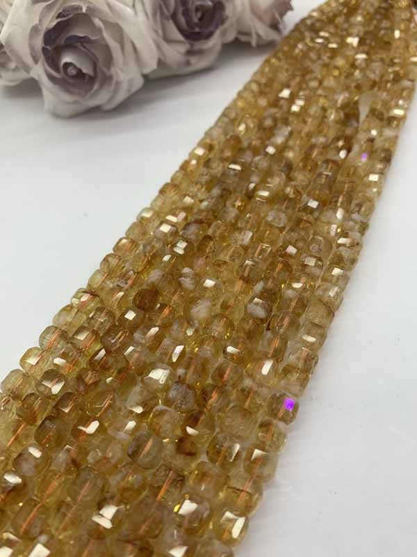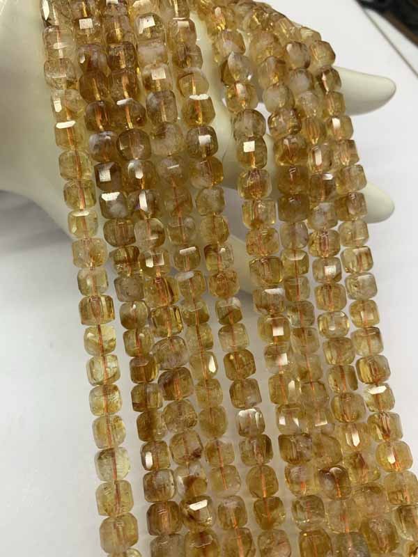 Citrine Cube Bead Long Chain Enhances Personal Temperament.