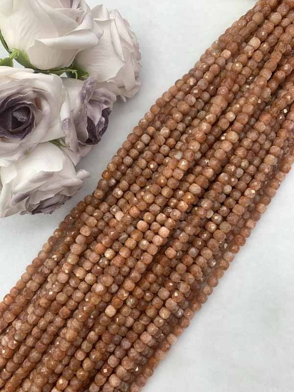 Sunstone with Golden Dots Cube Bead Chain brings good luck and blessings.