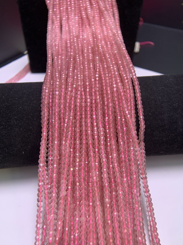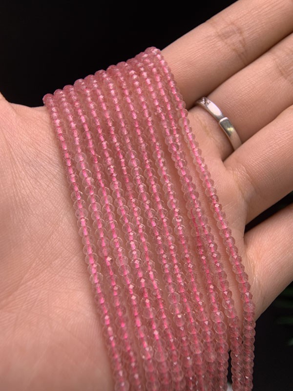 Gradient Strawberry Quartz abacus bead long chain can attract wealth and blessings, clear energy blockages, ward off evil spirits and protect the wearer.