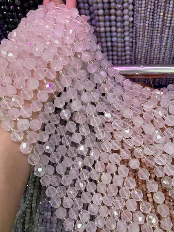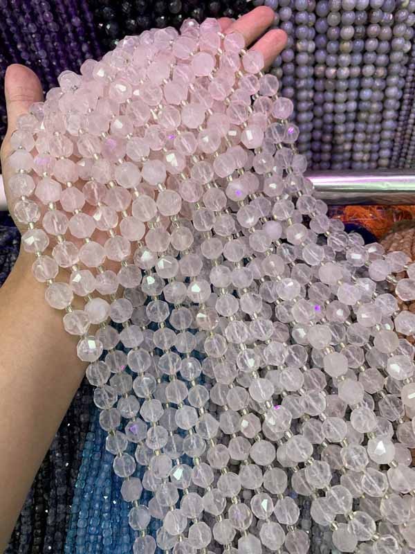 Grapefruit Pink Frosted Beads Long Chain — Close to the chest and neck area, easier to influence the Heart Chakra and Solar Plexus Chakra, more directly effective for emotional stability, expression and aura enhancement.