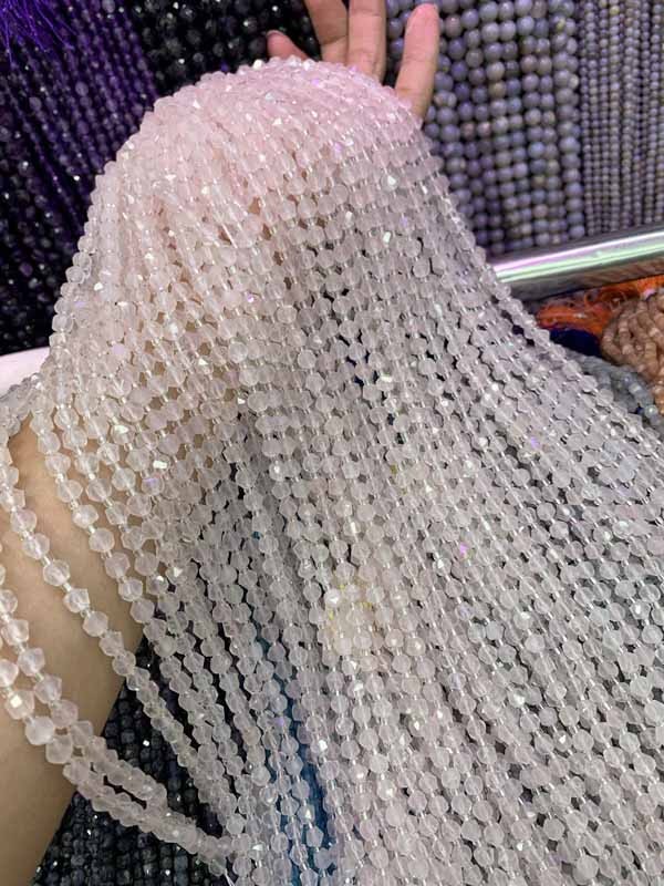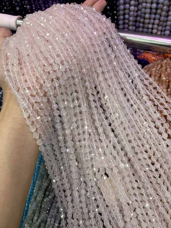 Grapefruit Pink Frosted Beads Long Chain — Strong positive energy field, blocks negative energy.