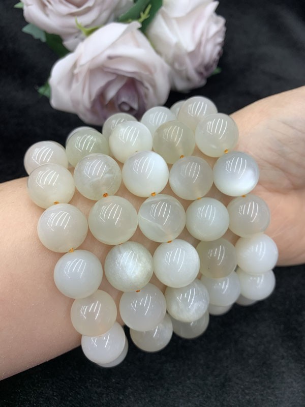 Gray Moonstone 6–14mm bracelet softens personal aura, attracts positive relationships, boosts interpersonal connections, and guards smooth emotional luck.