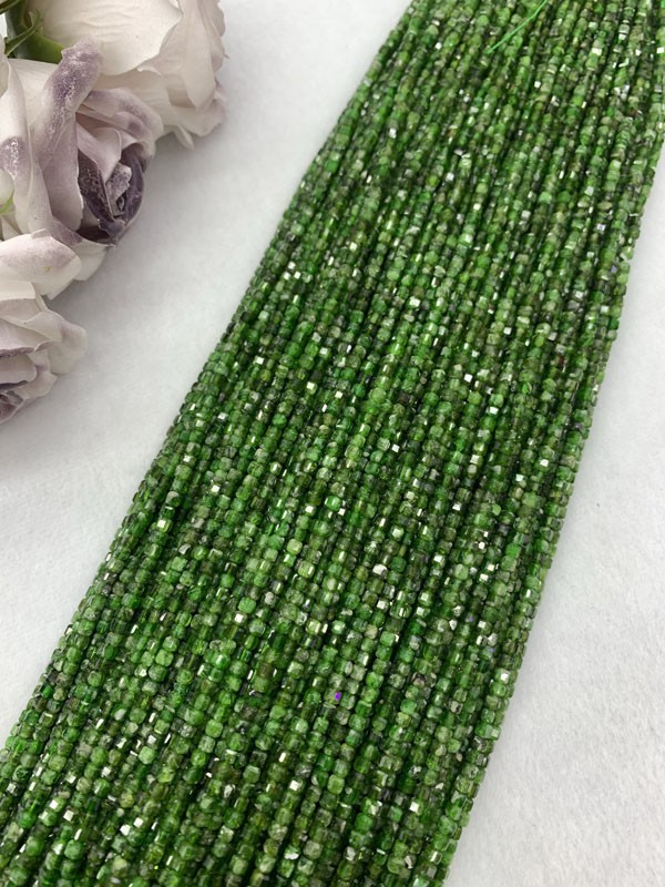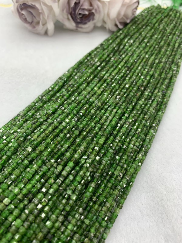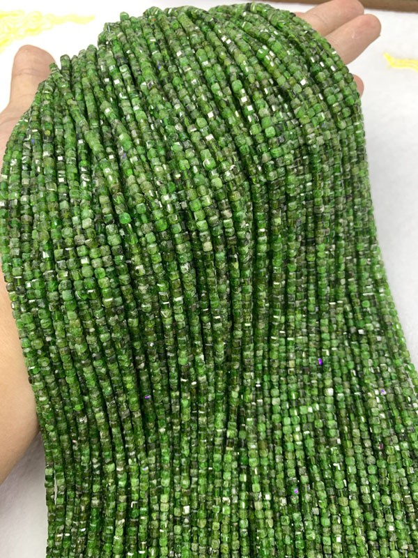Green Diopside Square Bead Long Chain helps release repressed sadness.