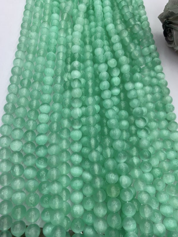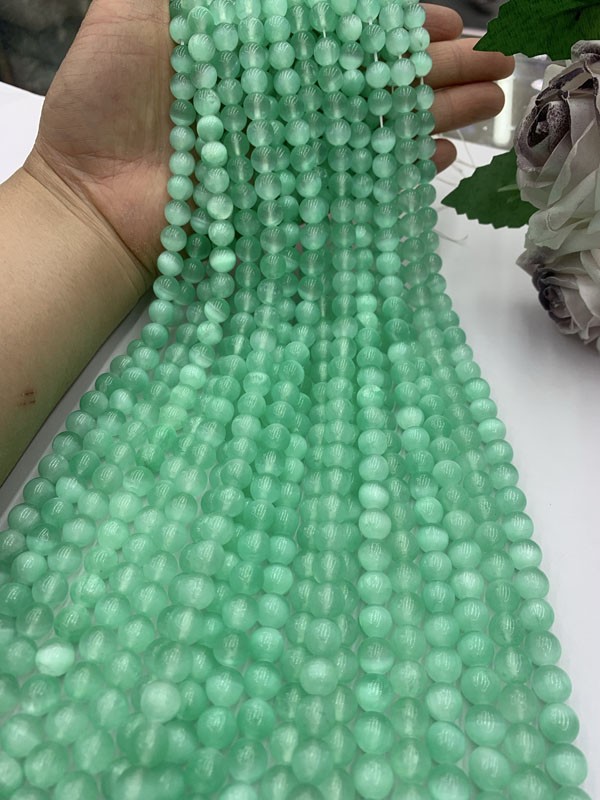 Green Selenite Cat's Eye Bead Long Chain brings inner peace and emotional stability, and enhances self-identity.