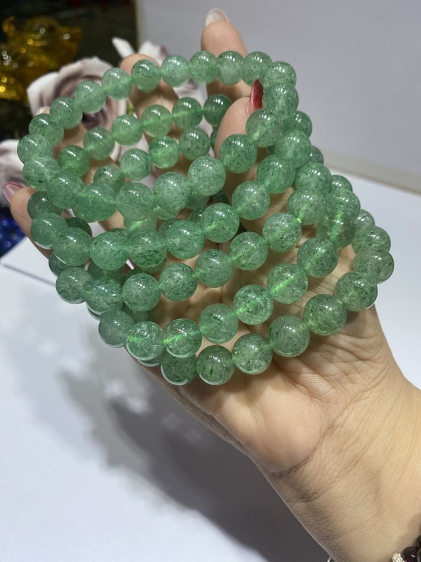 Green Strawberry Crystal Smooth Beads Bracelet helps awaken inspiration.