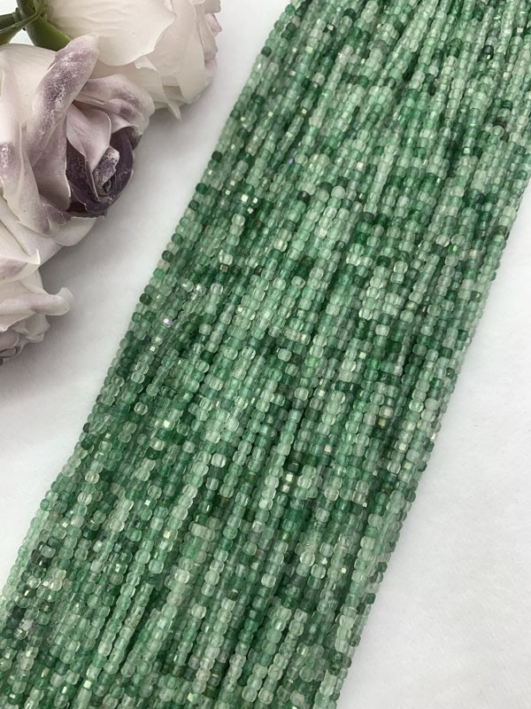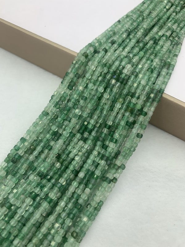 Green Strawberry Quartz cube beads long chain promotes self-forgiveness and self-acceptance.