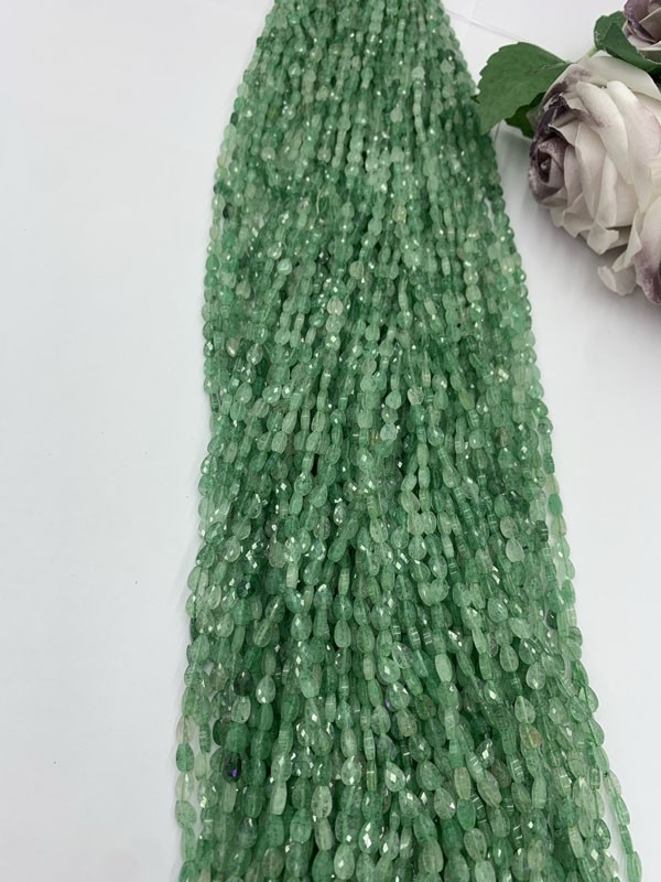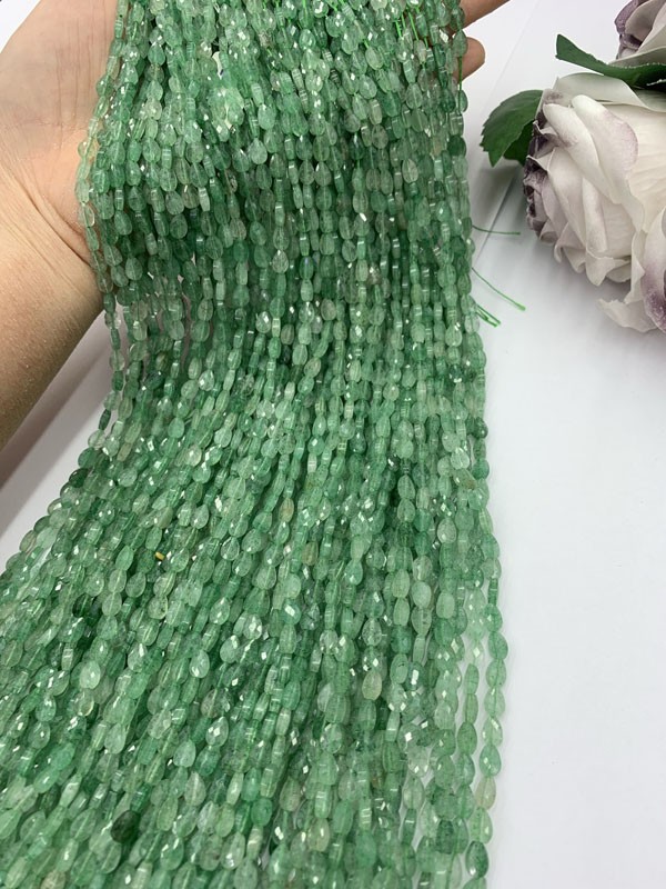 Green Strawberry Quartz teardrop long chain helps relieve sorrow.