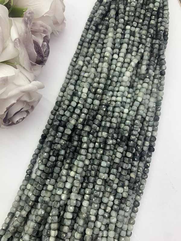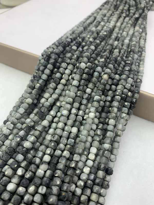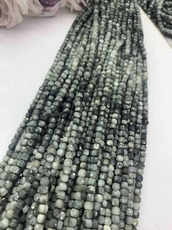 Hawk's Eye Gradient Cube Beads Long Chain wards off negative energy, attracts wealth, and boosts career breakthroughs.