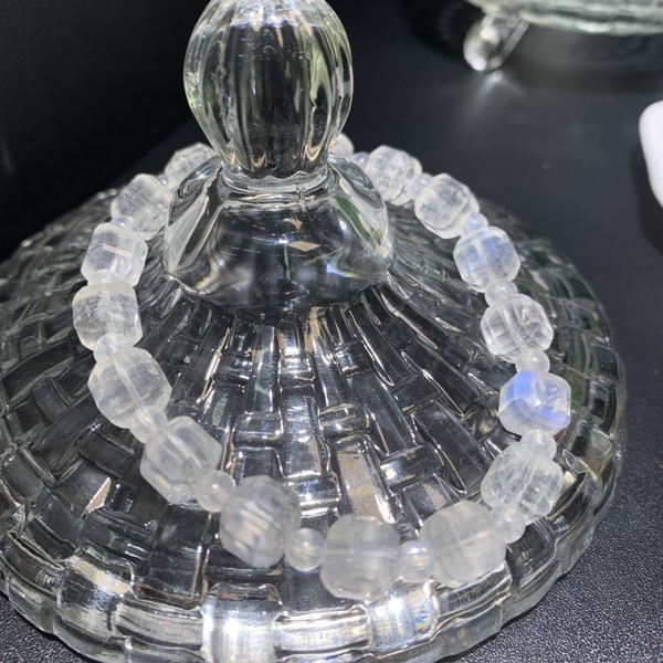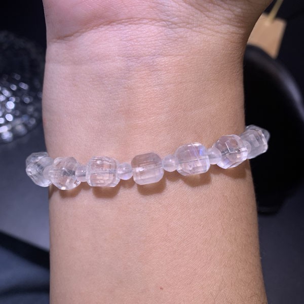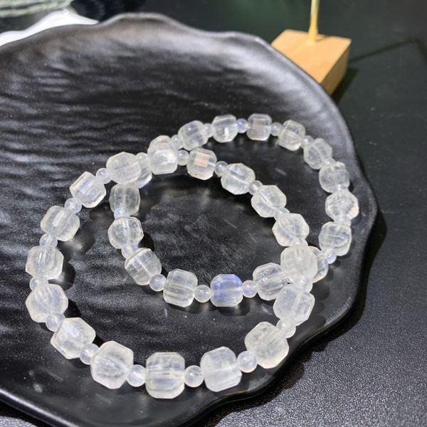 Blue Moonstone cube bead single-loop bracelet stabilizes mood and relieves anxiety.