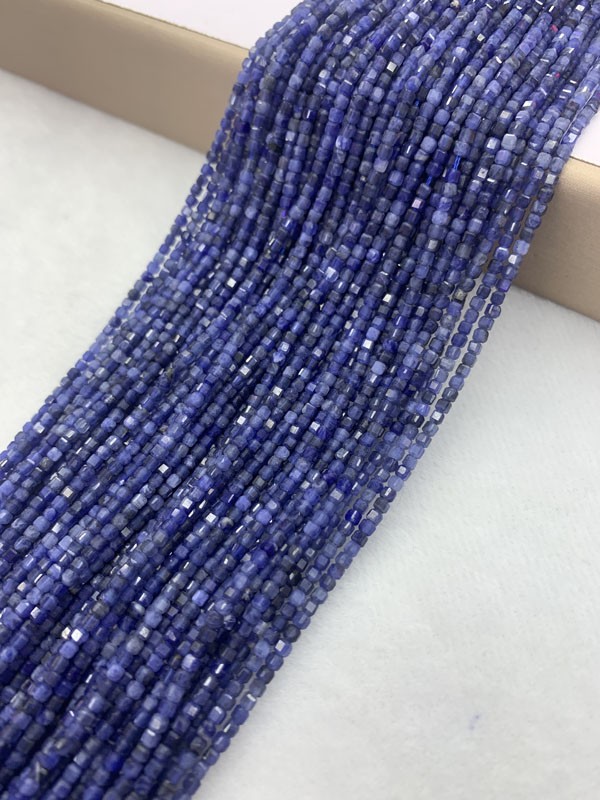 Iolite Square Beads Long Chain can bring ease and comfort to one's mood.