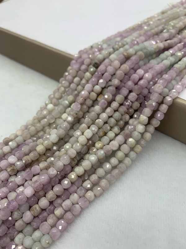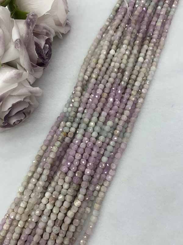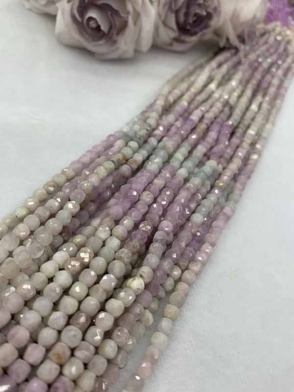 Kunzite Gradient Sugar Cube Long Chain promotes emotional flow and heals a closed heart.
