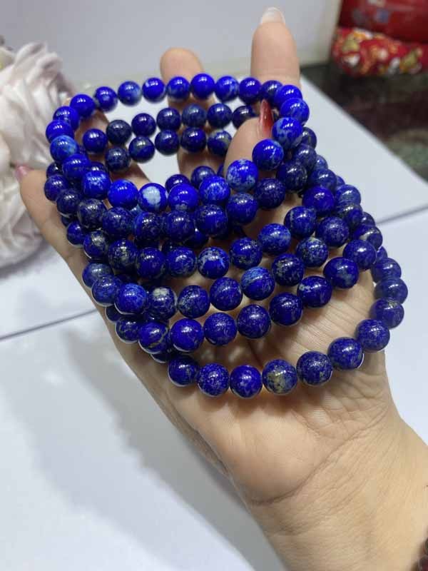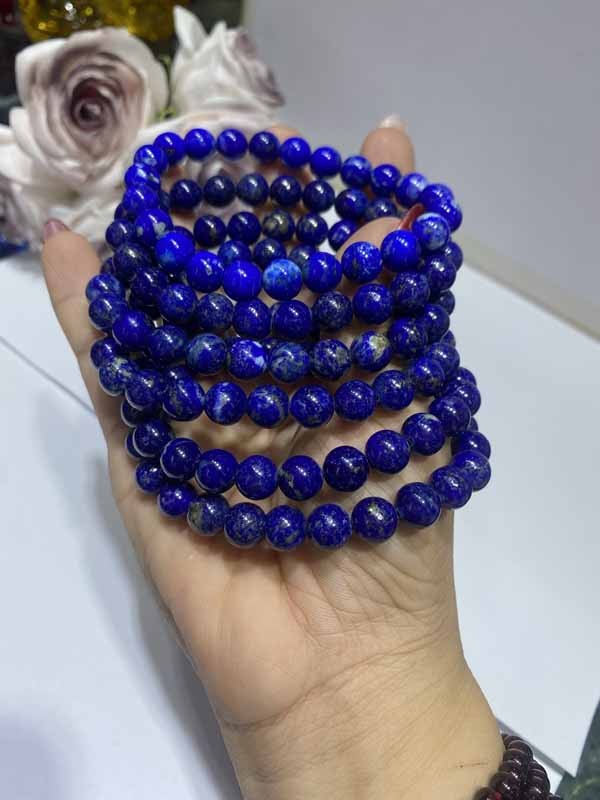 Lapis Lazuli Smooth Beads Bracelet: Relieves stress, improves insomnia and restless sleep, and reduces emotional internal friction.