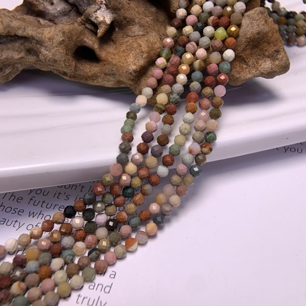 Macaron-colored Alashan Agate faceted long chain helps clear emotional baggage.