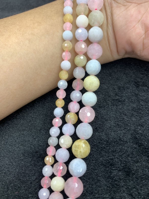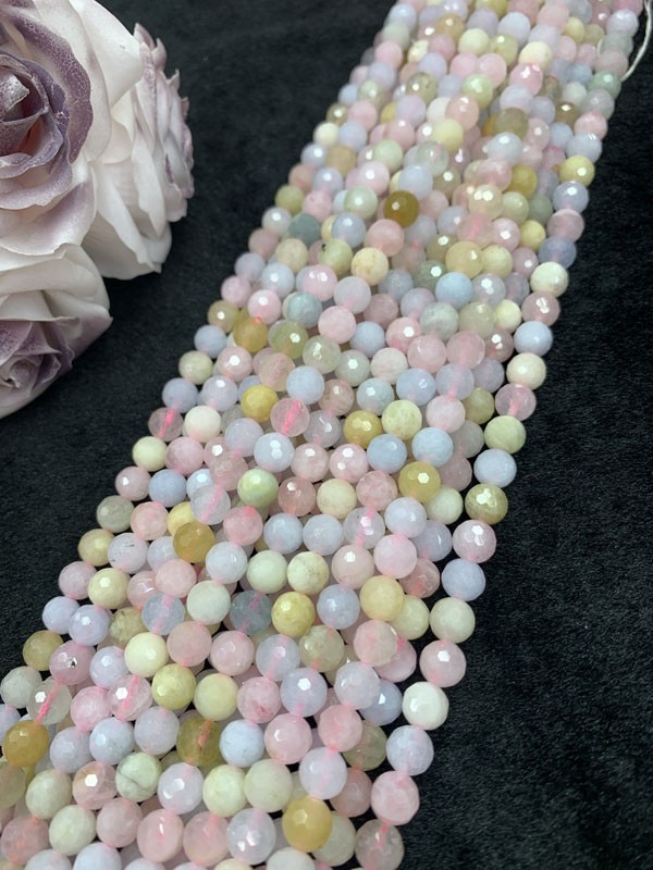 Morganite 128 Faceted Long Strand: Helps you express thoughts bravely, clearly and persuasively.