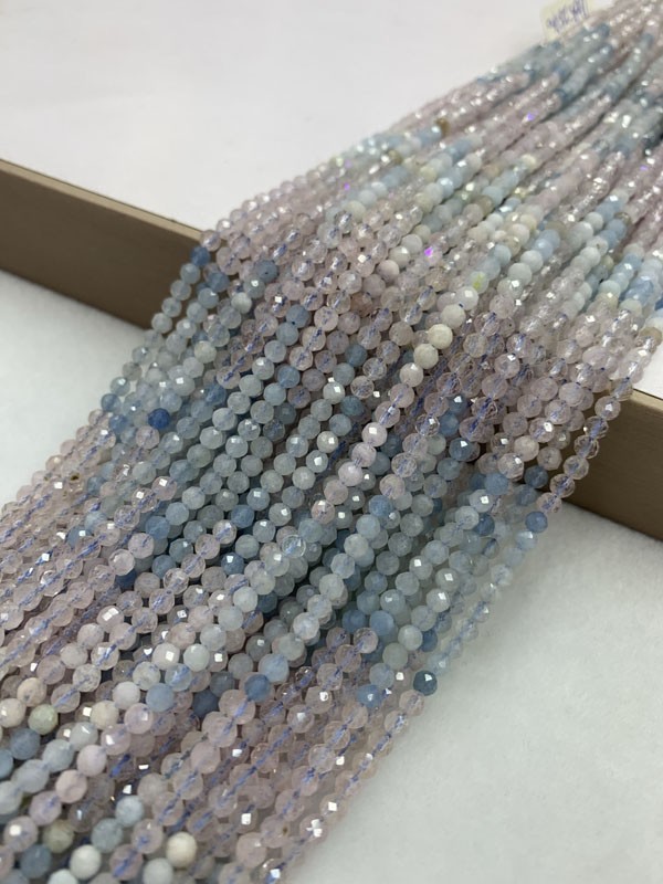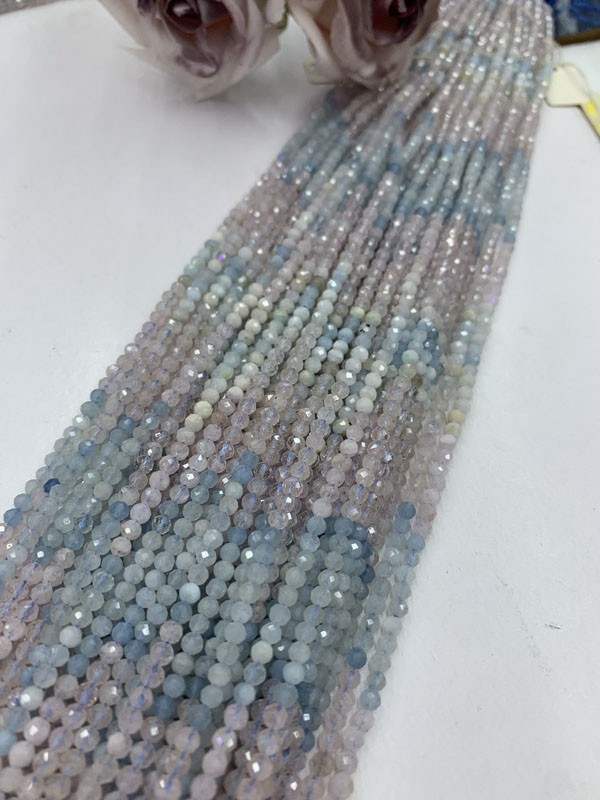 Morganite Aquamarine Gradient Faceted Long Strand: Gentle energy that soothes anxiety.