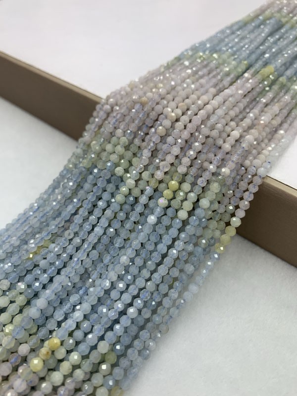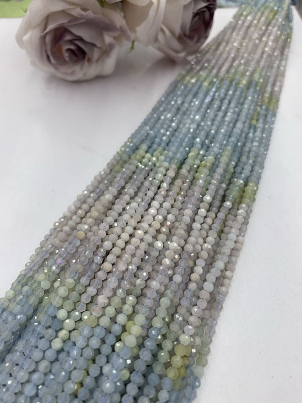 Morganite Aquamarine Gradient Faceted Long Strand: Gentle energy that soothes anxiety, irritability and stress.