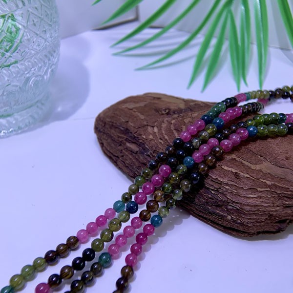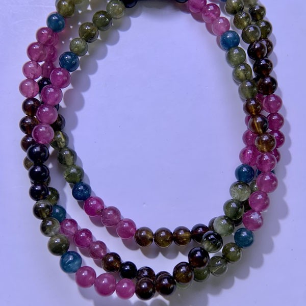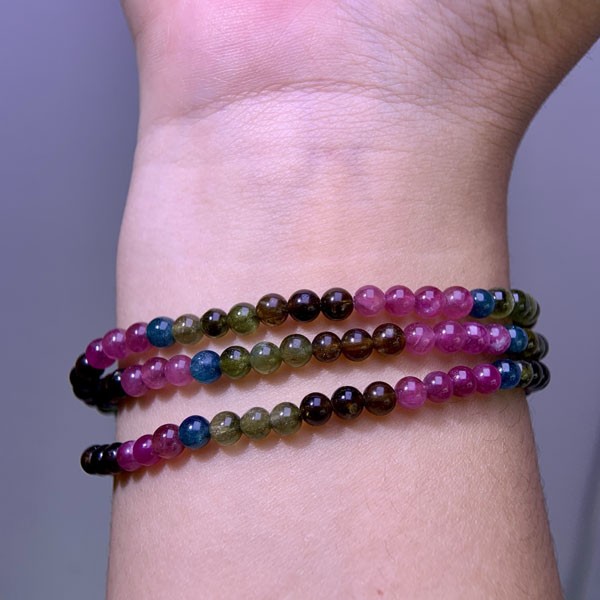 This old-mine glassy standard-color tourmaline (4mm) multi-strand bracelet with rich saturated colors can comprehensively balance the body's five elements (Wu Xing).
