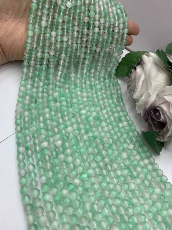 Purple-Green Dual-Color Scolecite Cat's Eye Beads Long Chain features gentle vibration frequency to calm the nerves.