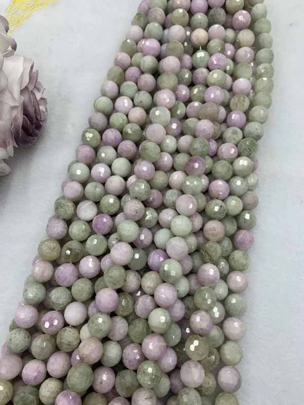Purple-Green Kunzite faceted long chain stimulates intuition and the sixth sense.