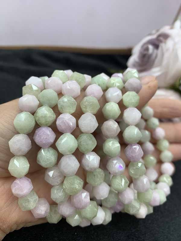 Purple-Green Kunzite Bracelet aids meditation and spiritual development.