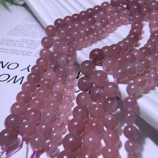 Purple Madagascar Rose Quartz long chain relieves mental fatigue and helps with headaches / migraines.