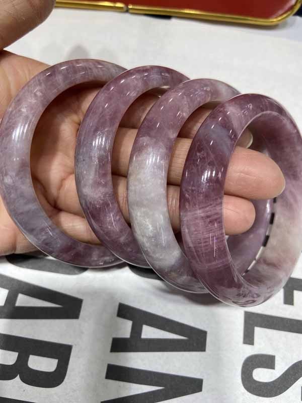Purple Madagascar Rose Quartz Bangle helps one become more cheerful and confident.