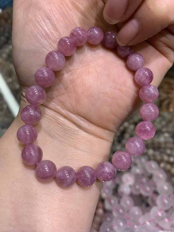 Purple Madagascar Rose Quartz Bracelet unblocks heart chakra energy and releases sorrow, fear and self-denial.