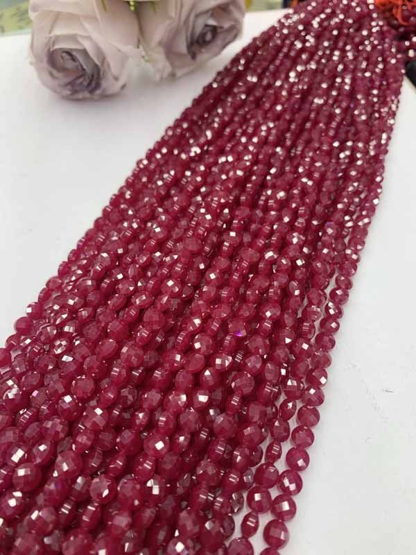 Red Corundum Round Slice Cut Long Chain Attracts Positive Relationships & Boosts Romance Luck.