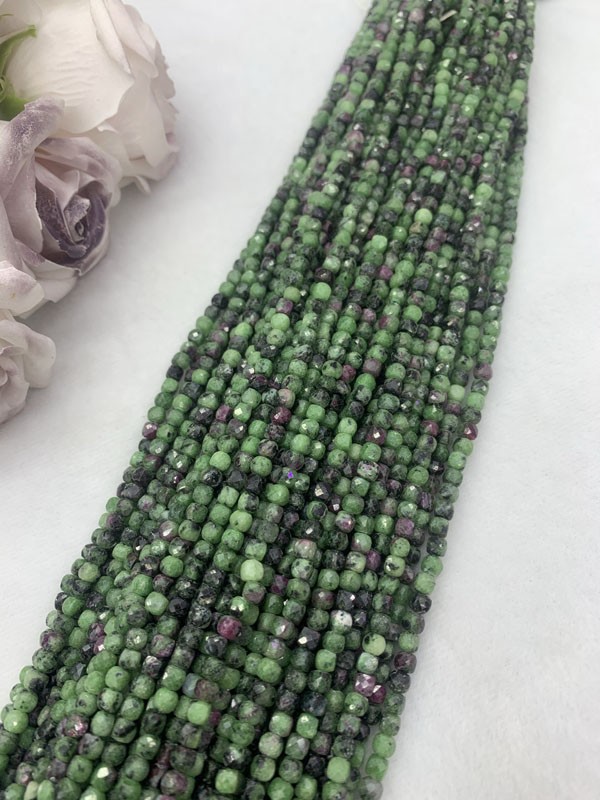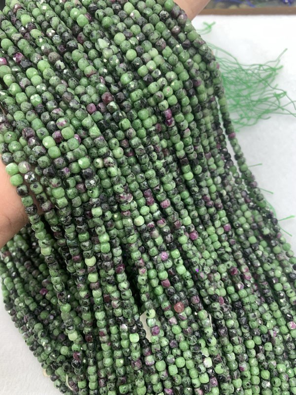 Red & Green Gemstone Cube Long Chain protects safety and harmonizes body and mind.