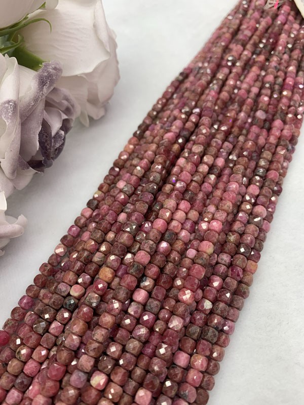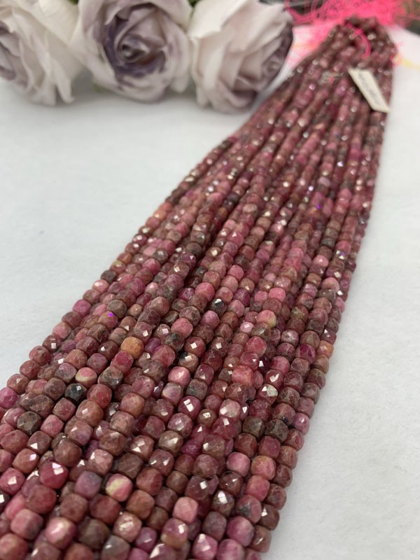 Red Rhodochrosite Cube Long Chain softens the mood and enhances affinity.
