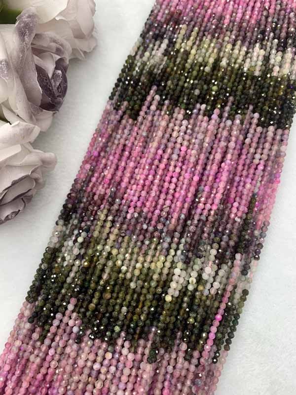 Tourmaline gradient small faceted 3mm, long chain 38cm