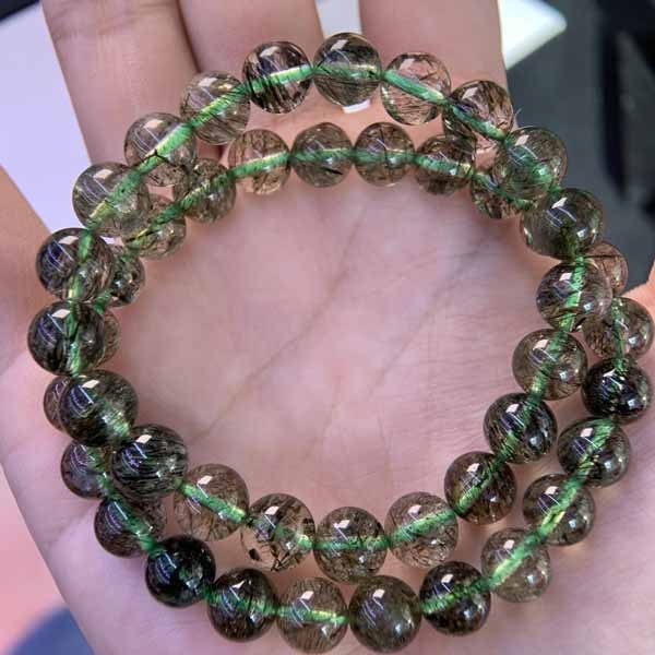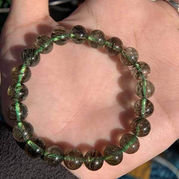 Tourmaline green hair crystal bracelet (8mm) single wrap.
